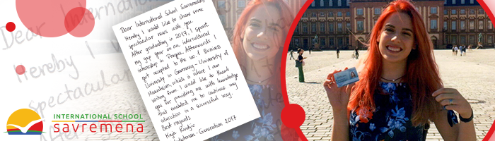 “Dear International School Savremena, I would hereby like to share some spectacular news with you!”