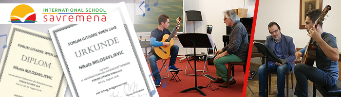 Savremena’s third-year student Nikola Milosavljević used his summer break for education and his greatest love – the guitar. While his peers were relaxing on the beach or the mountains, Nikola participated in two music events – ARLEMM, a summer music event in Arilje, and the international guitar festival Forum Gitarre Wien.
