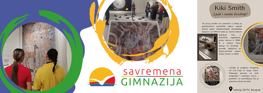 A visit to the exhibition of Kiki Smith, one of the key artists of the world art scene, proves that students of Savremena Gimnazija have the opportunity to attend various events in our city, but also that the teachers know how to include all current events in the curriculum. The exhibition "Humans and other animals" presents works of art created during the multi-decade creative career of this important artist: from the 90s of the last century, when the artist mainly dealt with the subject of the human body in various aspects, to works from the 2000s, in which she focuses on animals, fables and nature.